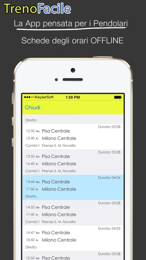 - Salvataggio dei risultati di ricerca per la consultazione Offline. Ad esempio: viaggi sempre da Pisa a Firenze ma non hai sempre internet con te? Bene. Con Treno Facile puoi salvare tutti gli orari dei treni che viaggiano da Pisa a Firenze per la consultazione Offline!!