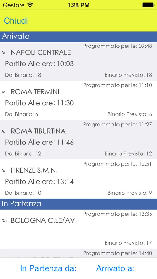 - Visualizzazione dei treni in partenza e in arrivo da una stazione.