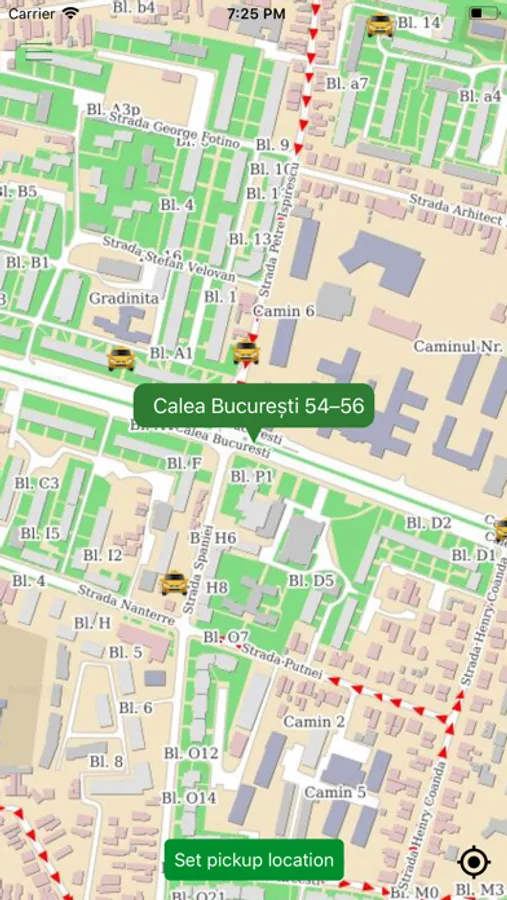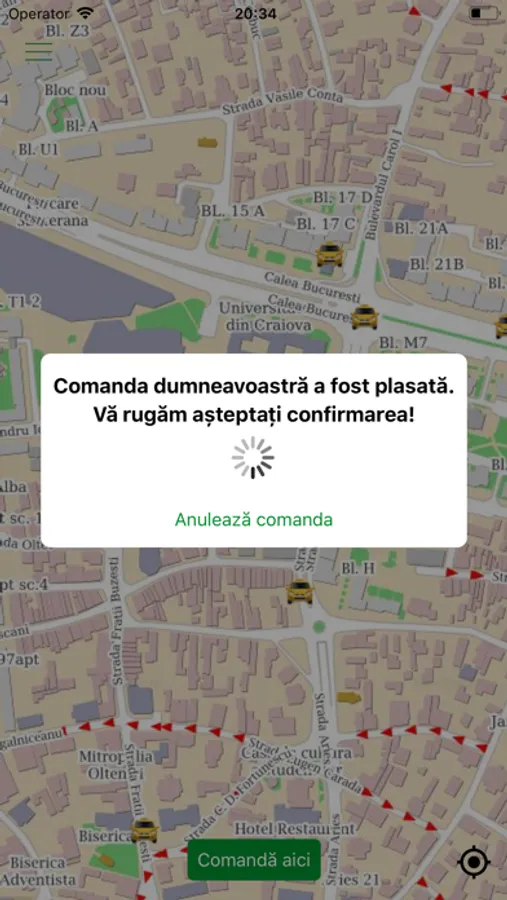 • The application automatically gets your location, and after you confirm the address, your order is sent to all available taxis.