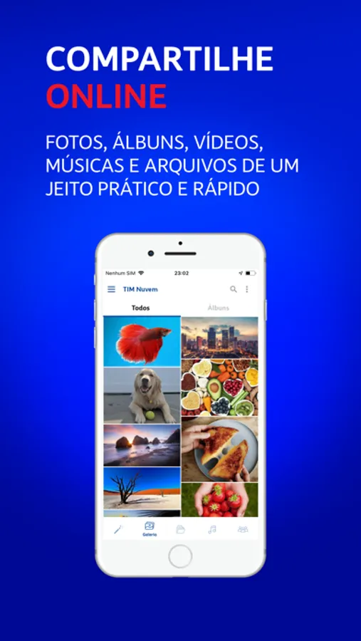 • Guardar online fotos, vídeos, músicas, agenda e arquivos.