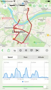 Especially for sporting activities, the app offers a voice output that provides status messages about the distance already covered, current speed, duration, altitude, direction, etc. during a track recording. This keeps you informed about your progress without having to look at your iPhone.