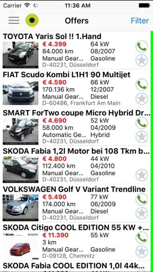 The results can be marked as favourites and stored. You can dial the phone number from the provider and indicate the location of offering or the route.