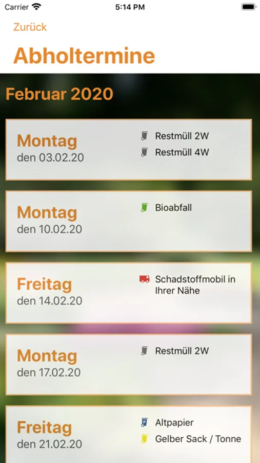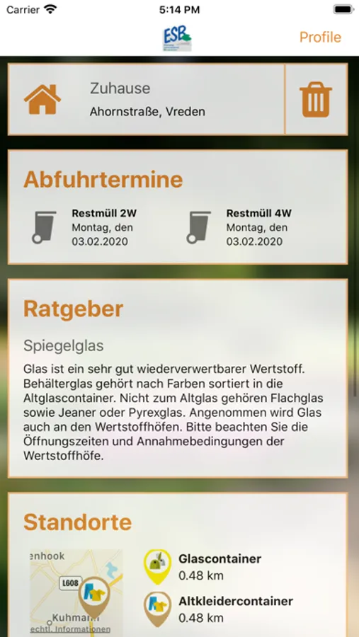 Abfall-App ESB Screenshots