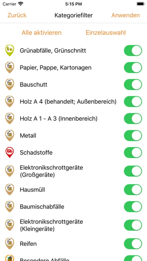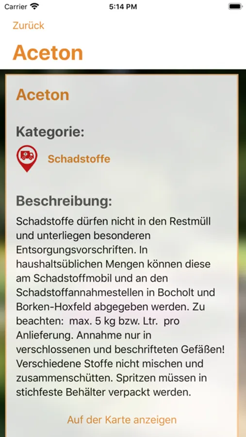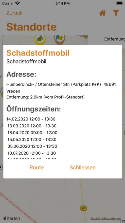 • eine Übersicht aller Entsorgungsstandorte mit Öffnungszeiten und einer Routingfunktion