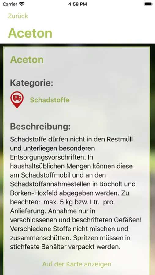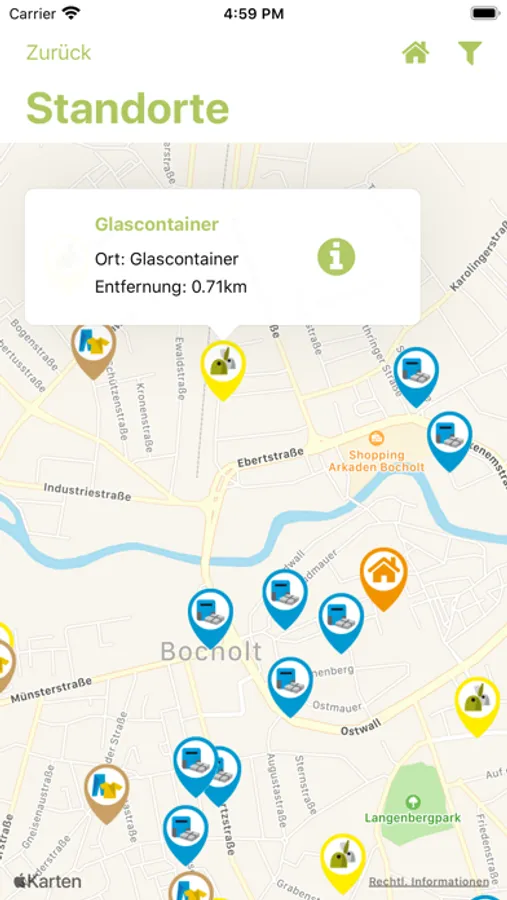 • eine Übersicht aller Entsorgungsstandorte mit Öffnungszeiten und einer Routingfunktion