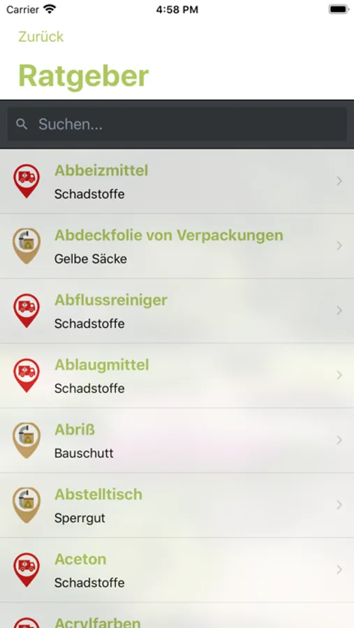 • ein Abfall-ABC oder Ratgeber hilft bei der Entsorgung ganz bestimmter Wertstoffe. Zudem wird auf die richtigen Entsorgungsstandorte verwiesen.
