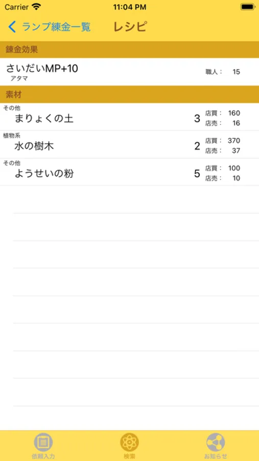 ドラゴンクエストX ランプ錬金レシピが登録されています。