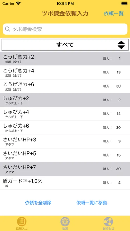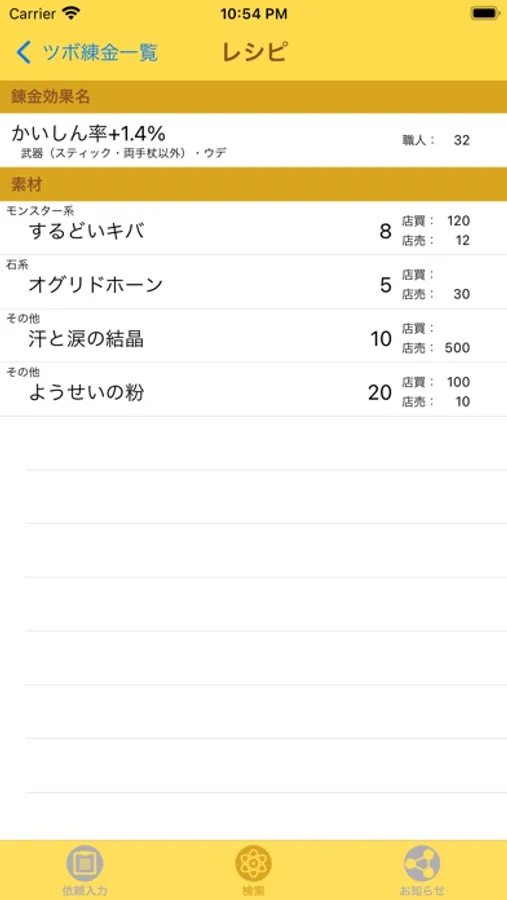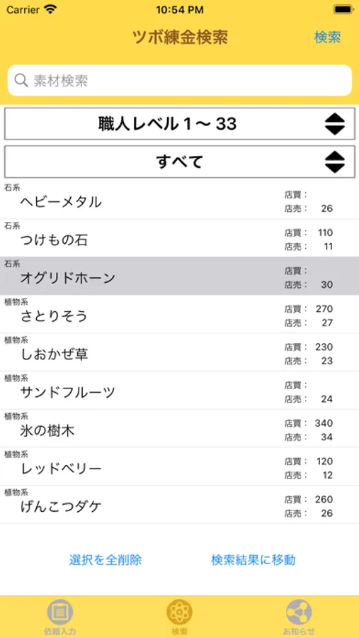 ツボ錬金検索機能