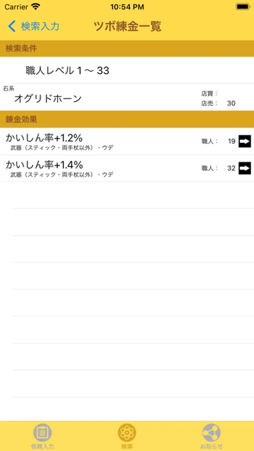 ・職人レベルからツボ錬金効果を検索