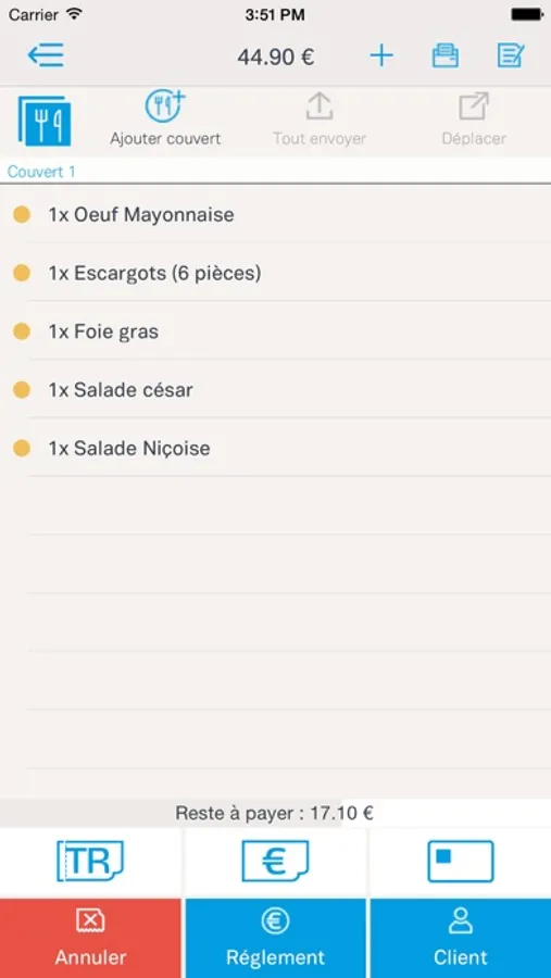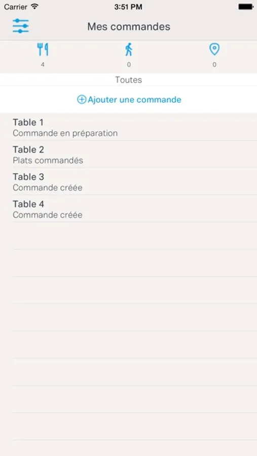 - Créer une commande sur place, à emporter ou en livraison.