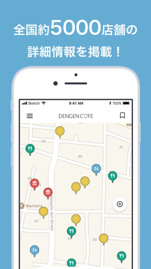 電源カフェは、充電・WiFiスポットが地図から探せるアプリです。