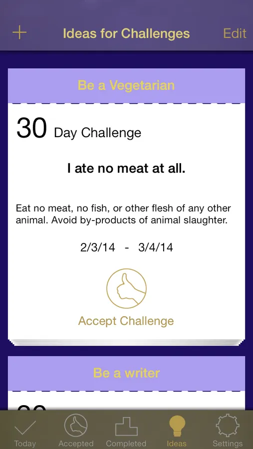 > Accept one of the included Challenges right away.