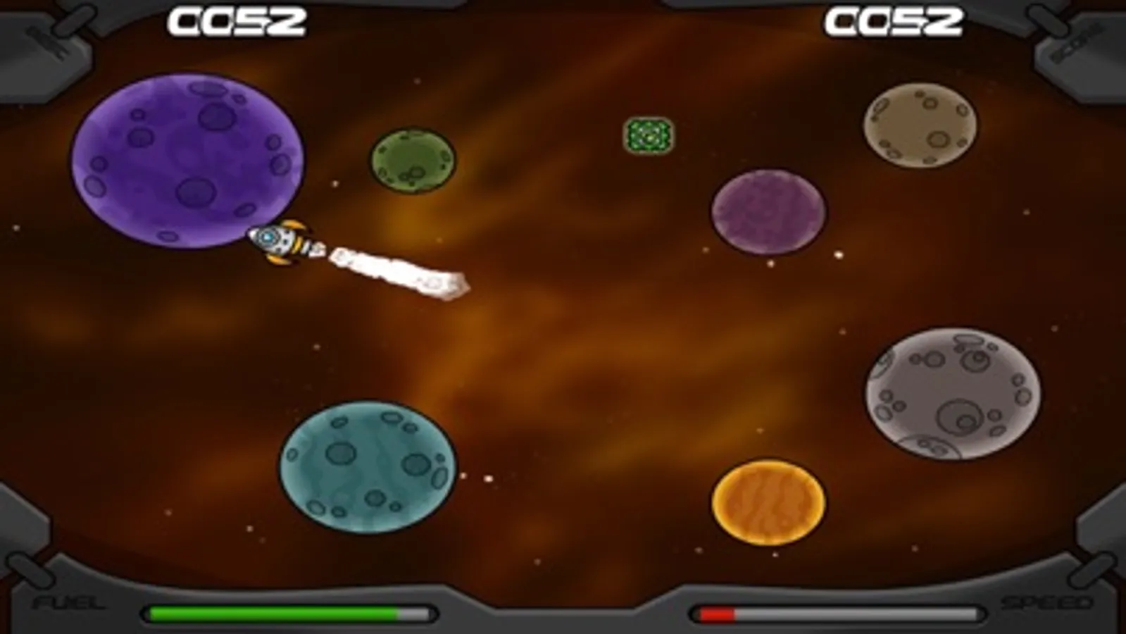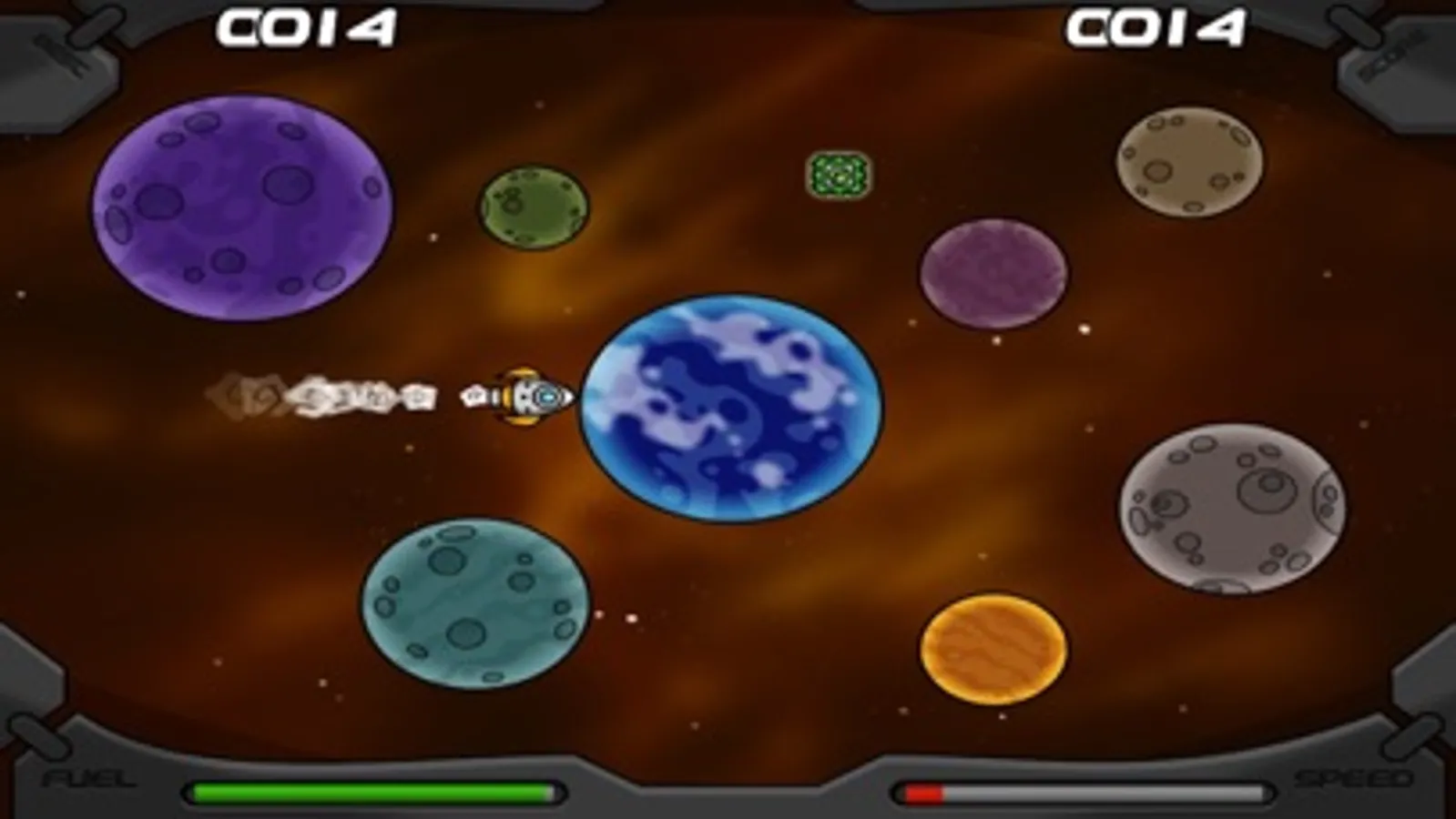 The smaller the planet the more points you get and points are also awarded for distance travelled.