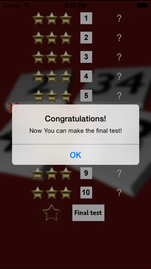 The game handles multiplications from 1*1 to 4*4.