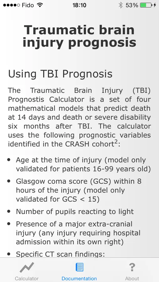 This application is intended for medical professionals involved in the management of patients with traumatic brain injuries. Use of this application requires medical training and can only support - not replace - clinical judgment. This application is not intended for patients or their relatives.