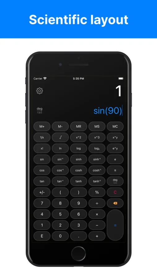 Fully customizable calculator with basic, scientific buttons, history tape and memory functions.