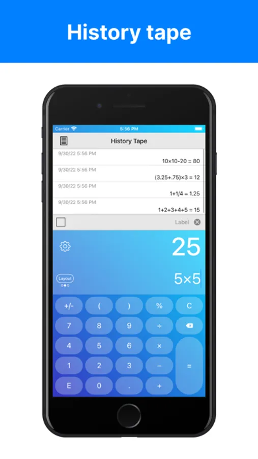 Fully customizable calculator with basic and scientific buttons and history tape and memory functions. This version is ad-supported.