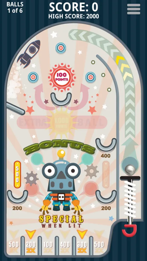 Handheld Pinball is a classic version of the pocket sized pinball games. There are 4 fun themes to play which are Halloween, Pirate, Robot and Christmas. Touch and pull down on the spring loaded ball release. The further down you pull the more powerful the shot. Each turn try and get the ball into one of the random bonus slots to get extra points or an extra ball.