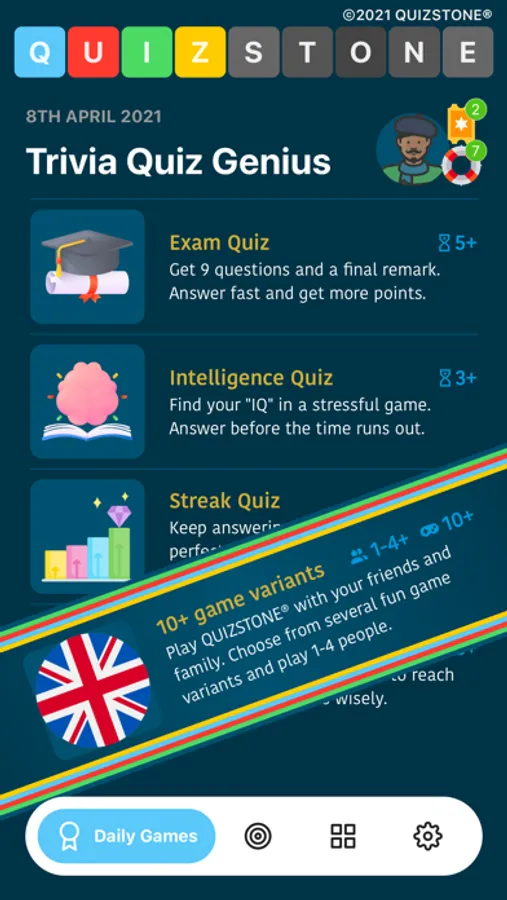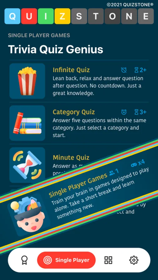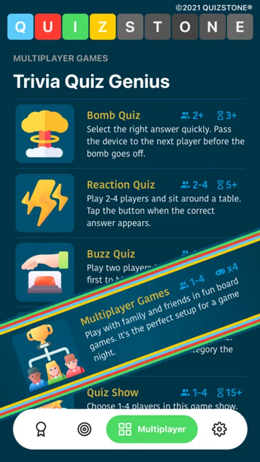 Play QUIZSTONE® with your friends and family. Choose from 10+ fun game variants that can be played by 1-4 people. You can play leaderboard games, single player games and multiplayer games.