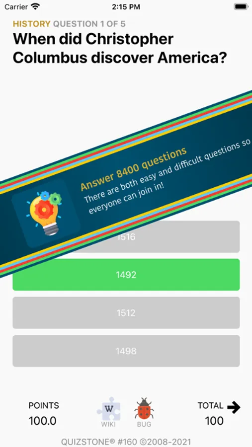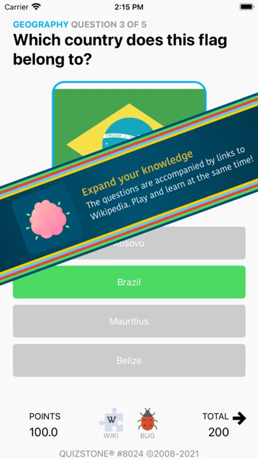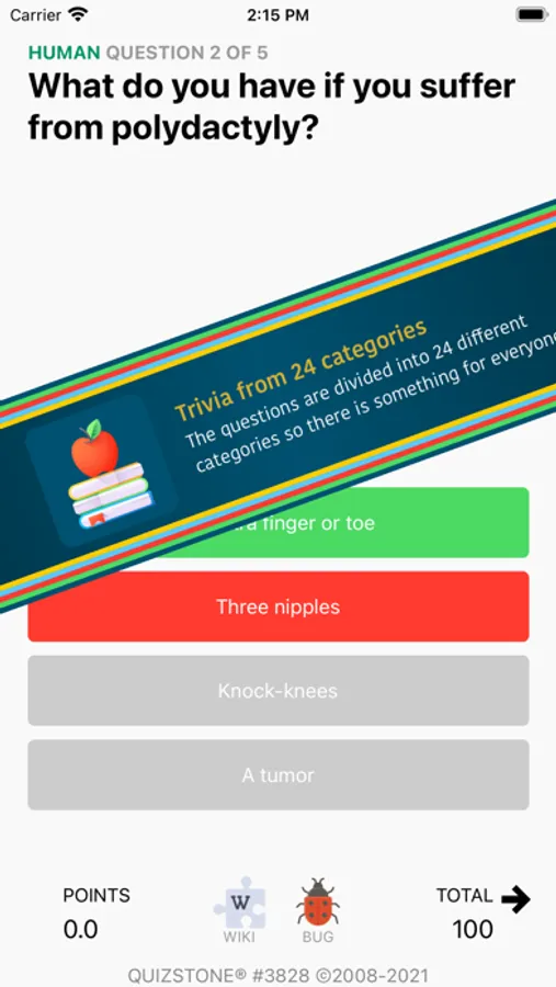 The questions are divided into different categories so there is something for everyone. Most questions are accompanied by links to Wikipedia so you can play and learn something new at the same time.