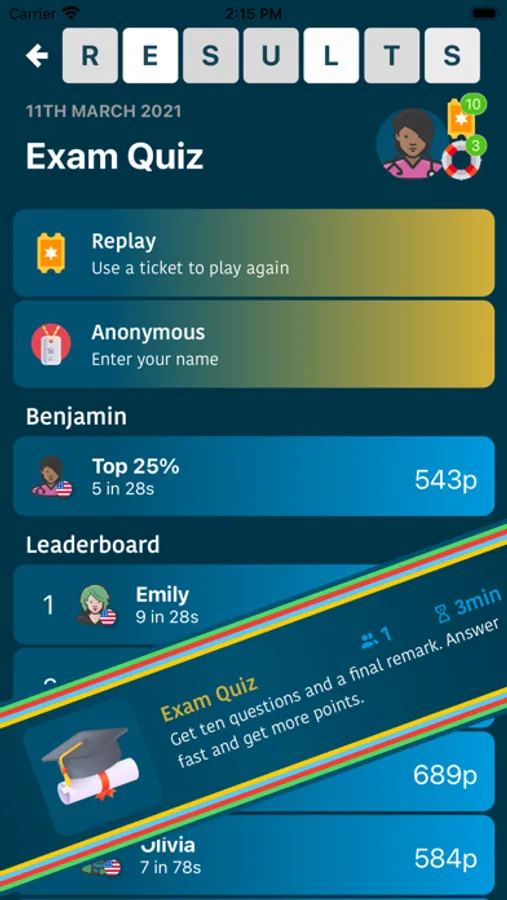 Play daily leaderboard games. Collect lifelines and use them strategically in the games to improve your chances.