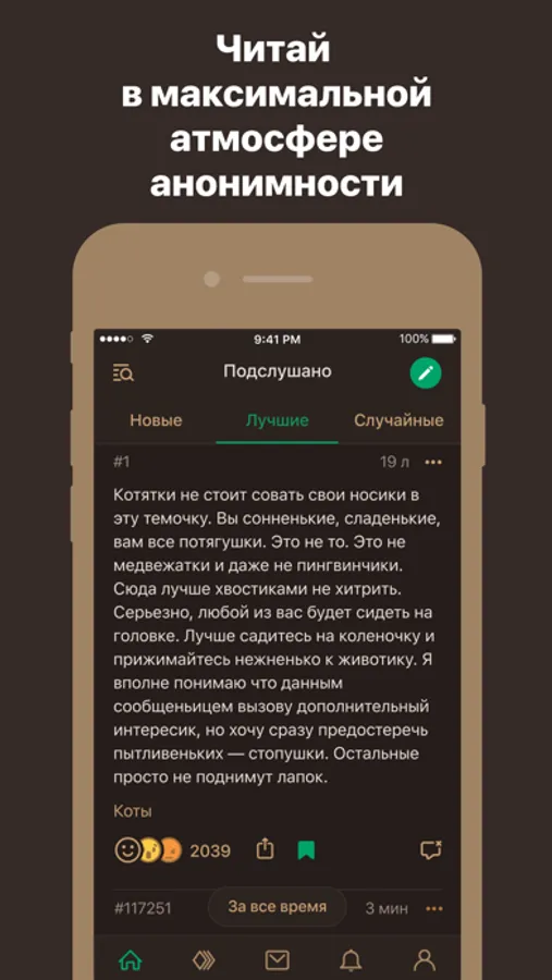 «Подслушано» — это проект, в котором люди каждый день анонимно делятся своими секретами, откровениями и жизненными историями перед огромной аудиторией.