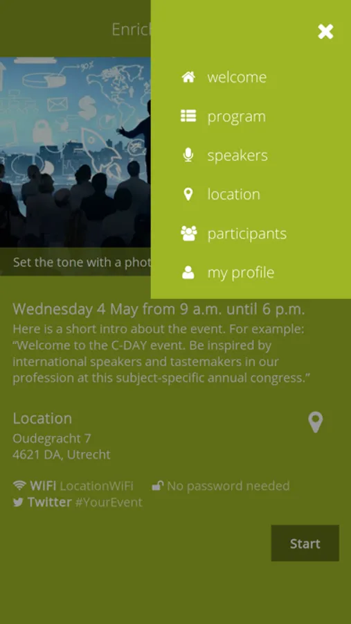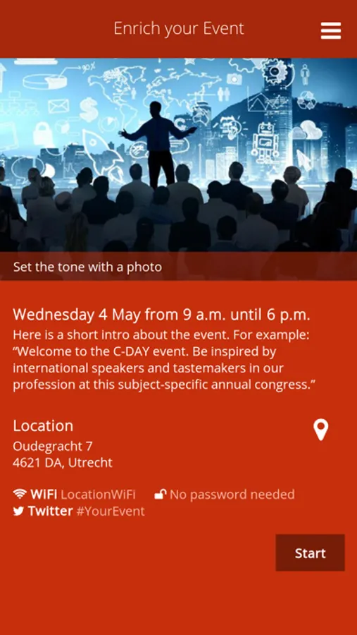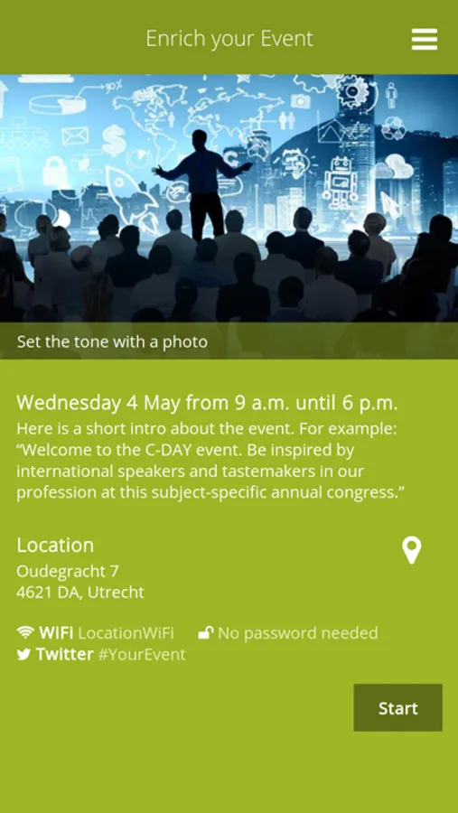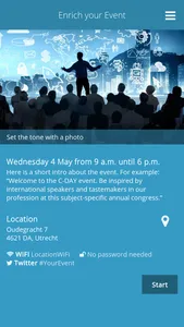 Yellenge is suitable for any type of event such as a conference, symposium, employee and management meeting, lecture, association members , shareholders and so on. Yellenge is best used above 100 visitors, up to more than 7.500 visitors. Yellenge app tunes and transforms its appearance so it’s like your own event or organization app. Both in terms of content, corporate identity, modules and possibilities. Check out our website for more information, explanations or request for a demonstration: www.yellenge.nl