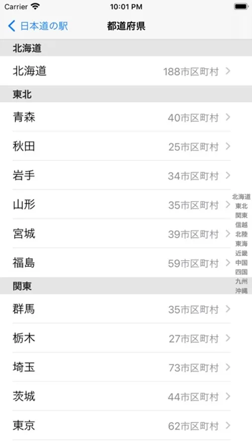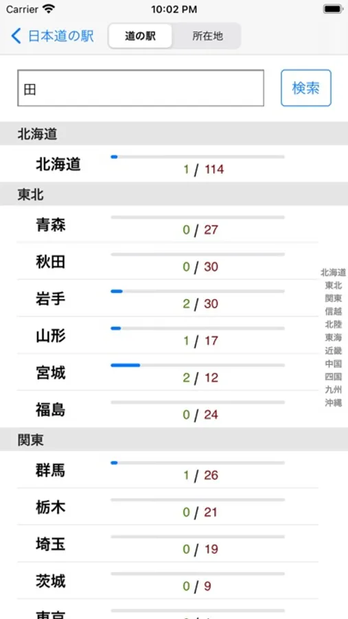 1、各都道府県、或は複数の都道府県の道の駅を表示、比較することができる。 (複数選択機能は有料バージョンのみ)