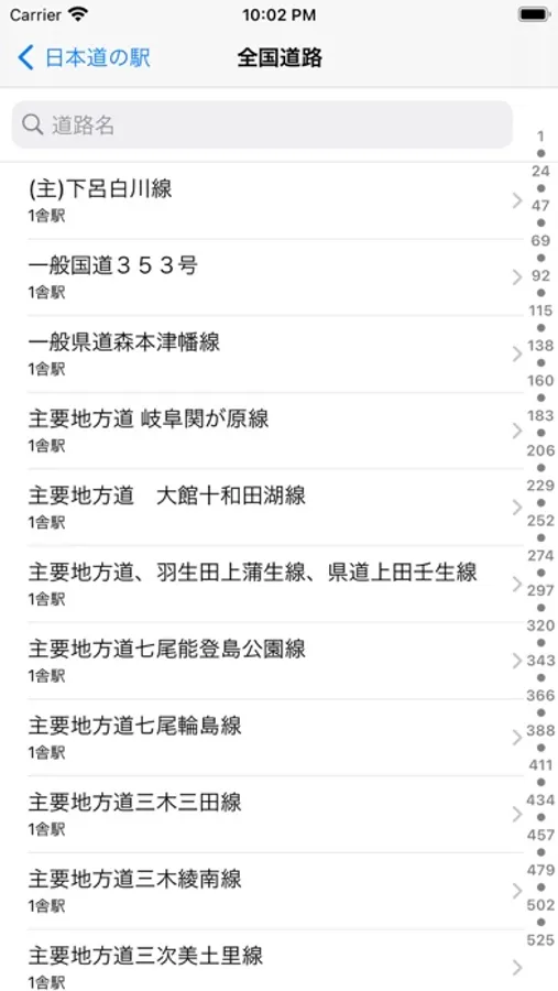 本アプリは道路526条、道の駅989箇所(7箇所の道の駅は工事、閉館、整備のため今収録していない)を収録しています。