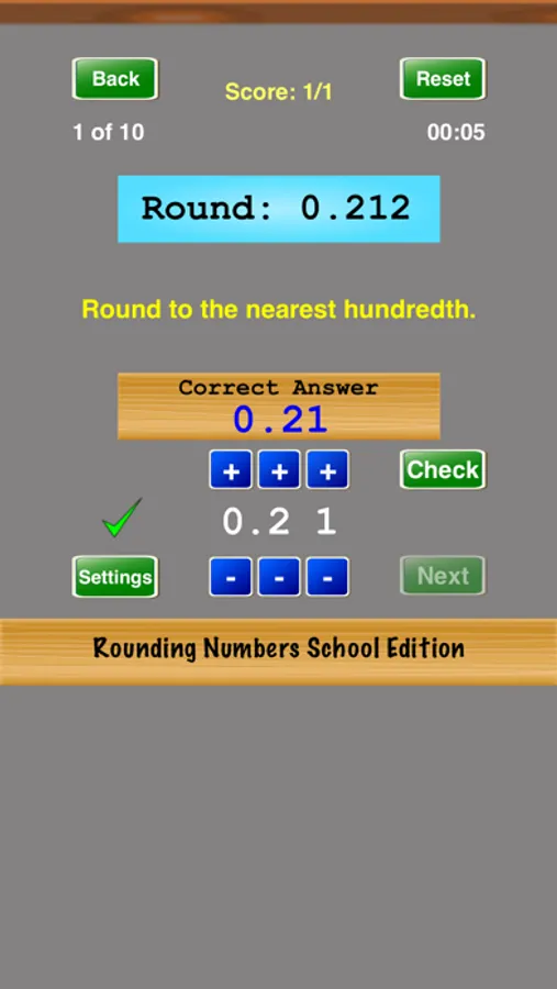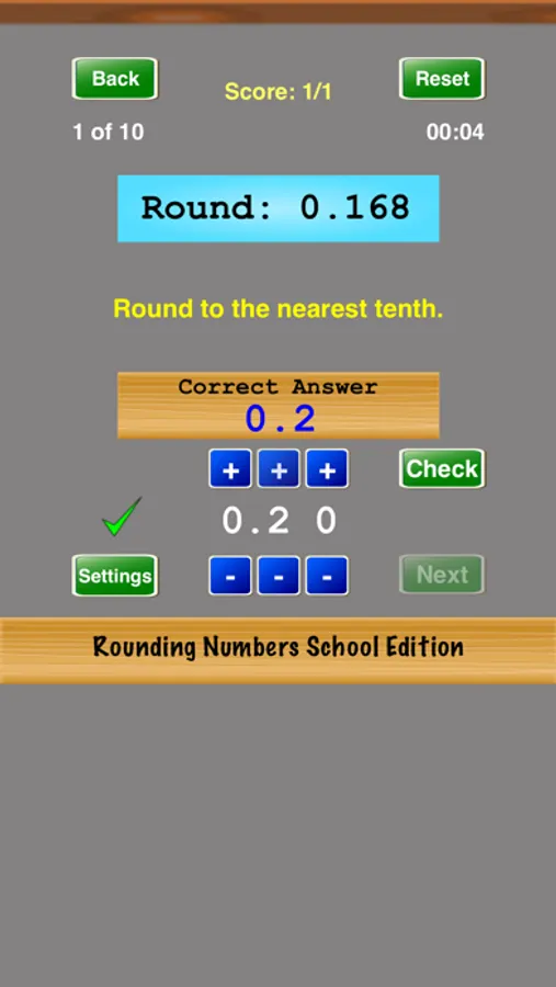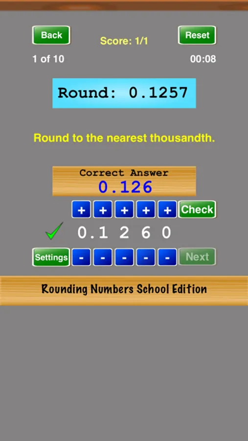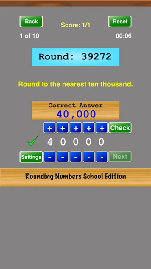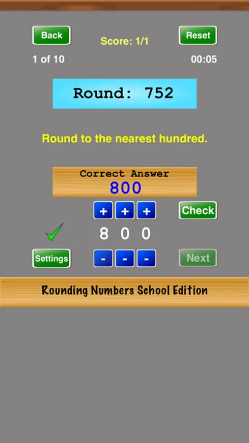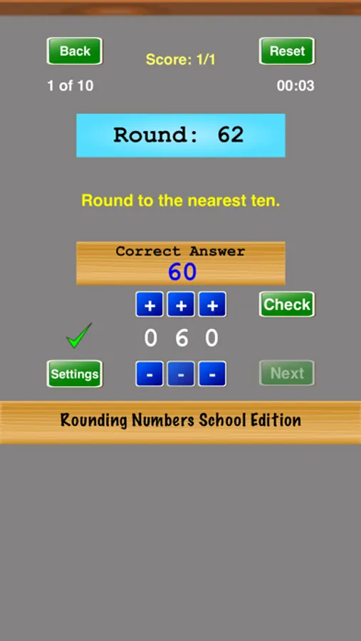 Rounding Numbers School Edition is a great way to test your rounding skills and have fun at the same time. Select the number of problems and other options in the "Settings" screen. Play until you master the game.