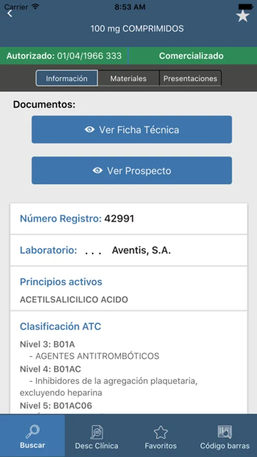 Entre otros muchos datos, y como documentos más importantes por recoger las condiciones de uso autorizadas de los medicamentos, la aplicación ofrece acceso a la ficha técnica (o resumen de las características del producto) y los prospectos.