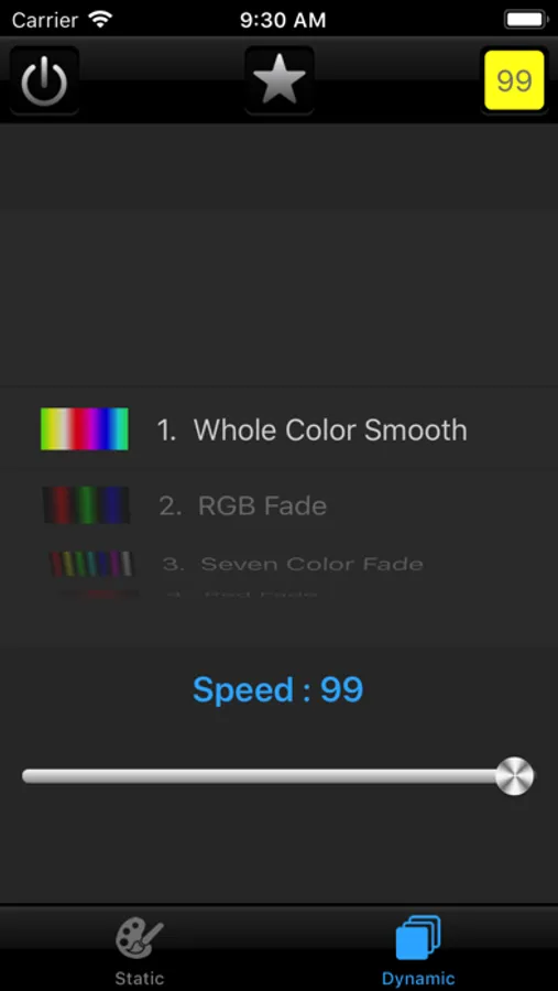 Color Easy is a full color LED control software work for specific RGB LED controller. User can set up static color or dynamic mode from UI, and the command is sent via voice to the LED controller. User can link to LED controller via speaker, earphone jack or Bluetooth audio signal. Color Easy can set up 16 mega static colors and 42 dynamic modes with speed variable from 0-99, also user can save favorite scene on the software.