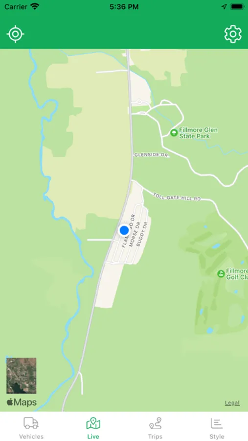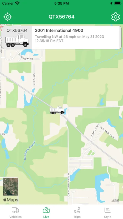 - Live tracking, to show the latest location of a chosen vehicle in real time, as well as other vehicles in the area; alternatively, it displays the currrent location of the mobile device and the locations of vehicles or drivers based on this. The vehicle can be selected to be ‘followed’ by the app, and the map screen will automatically be updated.
