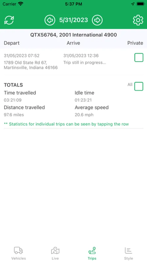 - Trip data, which shows the trips carried out on any day over the previous 6 months.