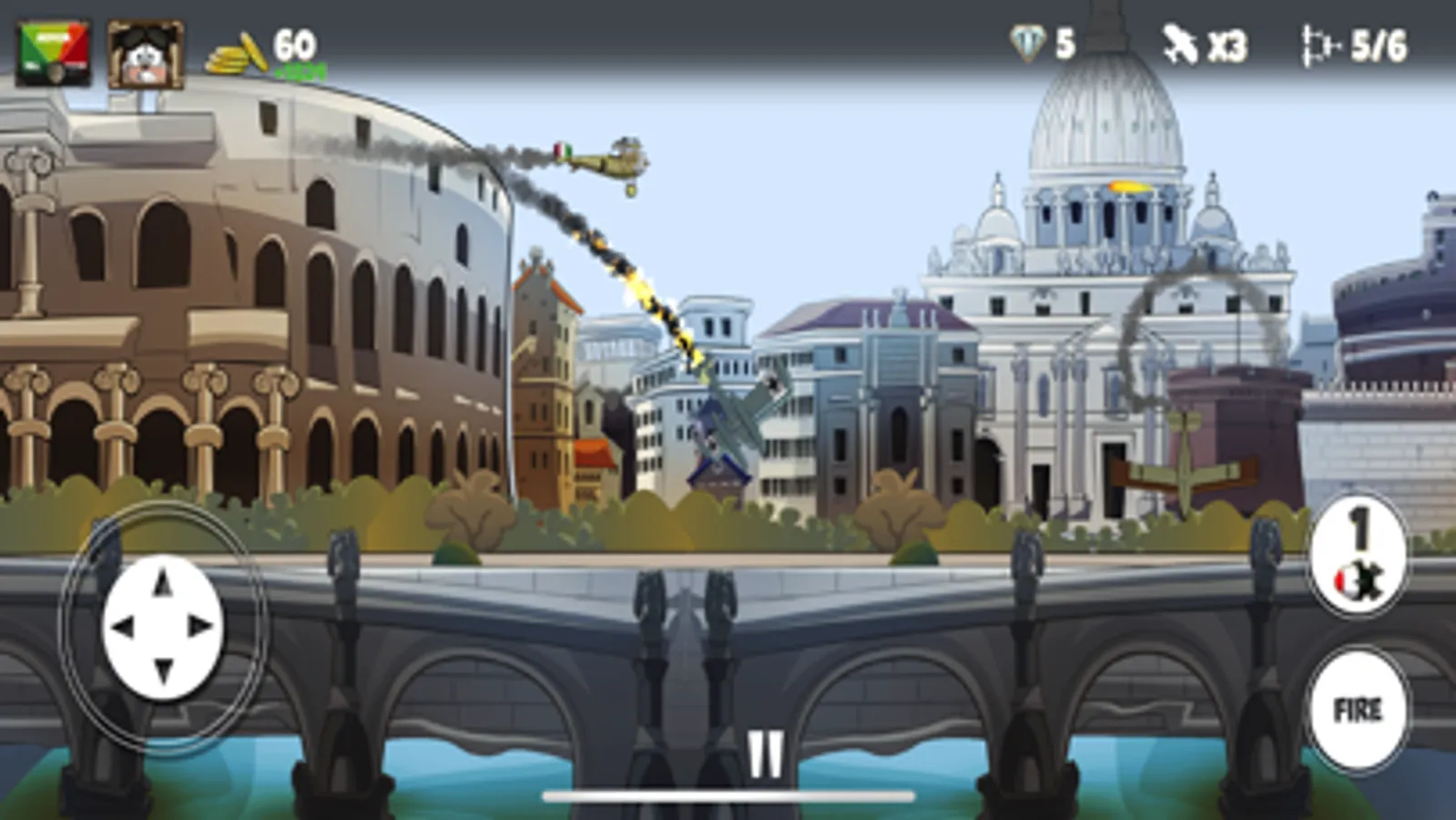You will fly World War I airplanes against the best aces in history. Enjoy beautiful hand drawn European cities and detailed historical airplanes.