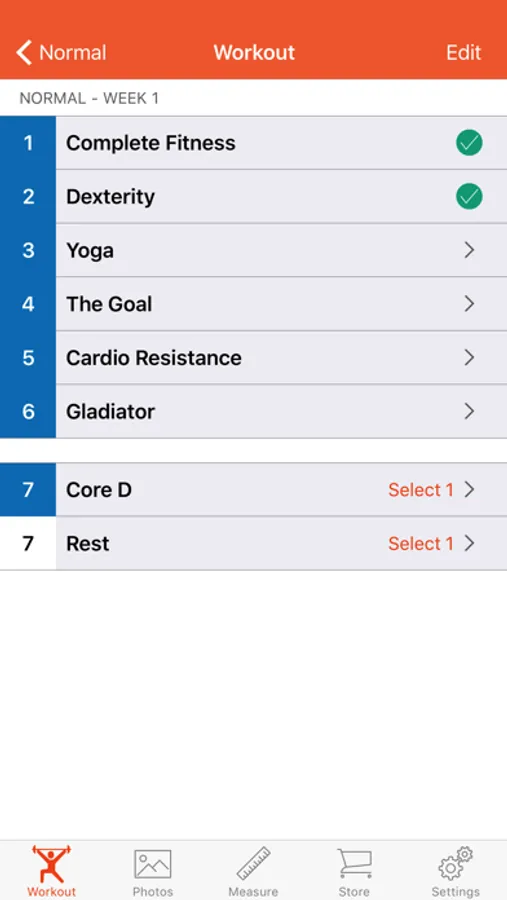 ***You can mark All workouts as complete by pressing the edit button on the week list.