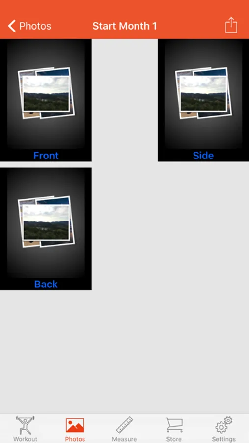 Take monthly photos to visually track your transformation progress over the 90 days. The angles include front, side, and back. Photos can be taken with the internal camera of your device or they can be imported from your photo library. View your photos sorted by all, front, side, or back. You can email them to yourself or friends.