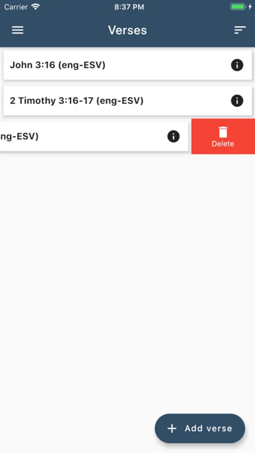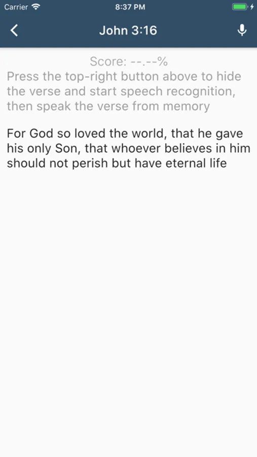 Add Bible verses (or even whole chapters) you want to remember and test yourself by speaking the verse or writing it out. Alternative Bible versions coming soon.