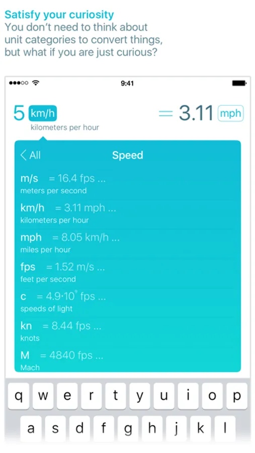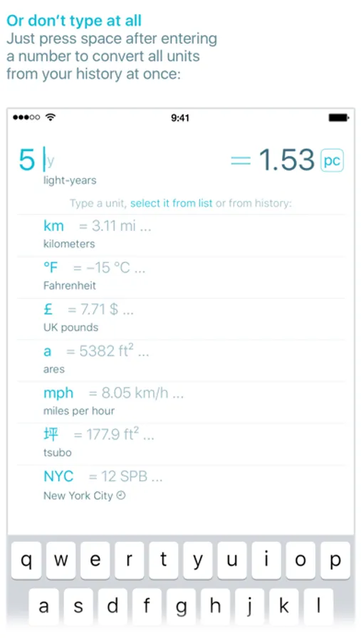 Start with the number, then type one or two letters and see the result. Use dedicated numpad to avoid switching keyboards. Forget digging through endless unit categories in urge to find the one you need (although you can do it when in adventure mood). If the number is in your clipboard, we’ll pick it up.