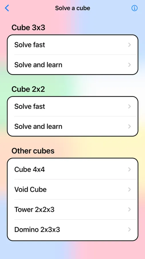 We also offer solvers for cubes of size 2x2, 4x4, Void Cube, Tower and Domino (Only the solver 3x3 is free)