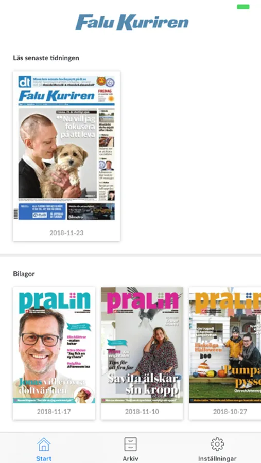 Som prenumerant har du även åtkomst till bilagan Pralin, Borlänge Tidning och fyra andra Dala-tidningar i appen.