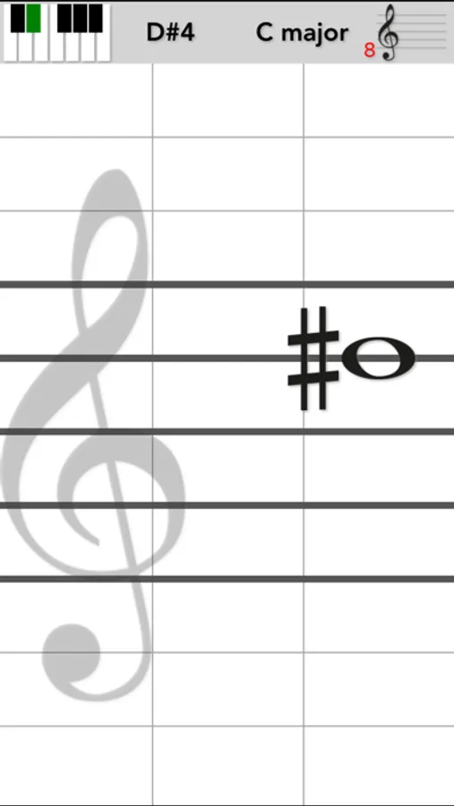 Select the Clef and Key you want to play and VoiceMyNote will automatically adjust tapped notes based on key and clef. Tap left to lower the note, tap right to raise it.
