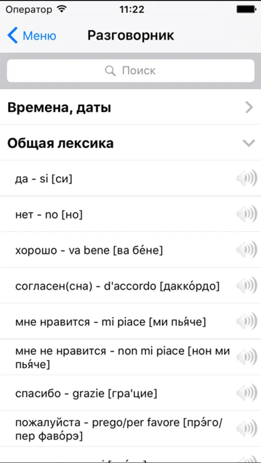 ● КРАТКИЙ РАЗГОВОРНИК. Разговорник поможет при необходимости быстро подобрать нужное слово. К сожалению в текущей версии разговорник не предоставляет возможность прослушивать произношение слов и фраз (динамик не активен).