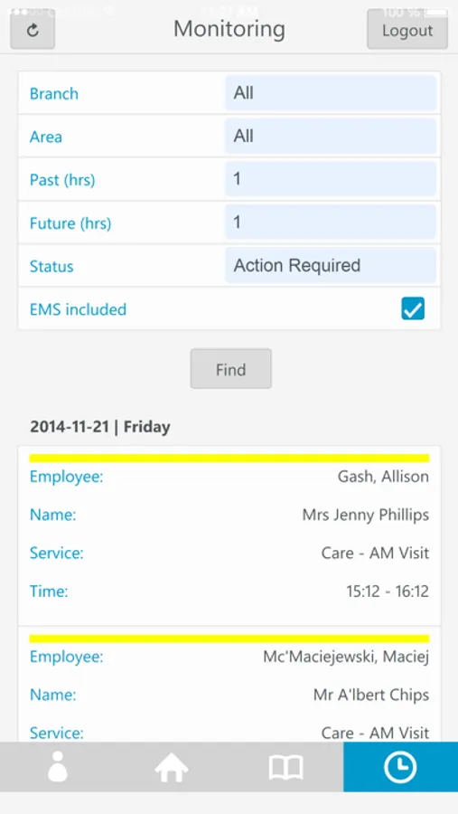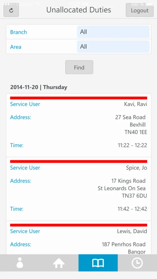 This information includes access to your Employees and Clients; address and contact details, their Emergency Contact Details, and the visits that are allocated to them. Furthermore the App also allows you to quickly view the upcoming unallocated visits.