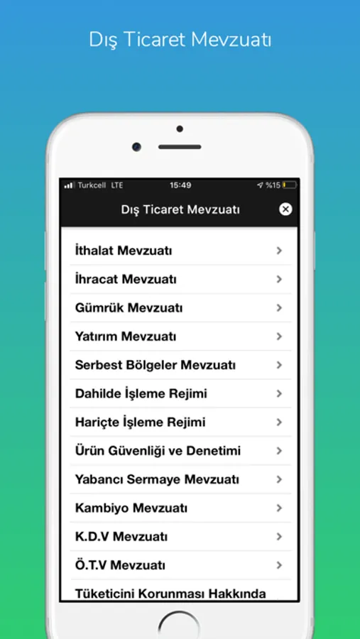 Mevzuat.Net uygulaması, IOS cihazınızda çalışacak bir programdır. Mevzuat.Net tarafından geliştirilen bu program, ücretsiz olarak isteyen tüm kullanıcılara açıktır. Programın amacı, Türkiye' nin dış ticareti ile ilgili bilgileri ve gelişmeleri en kısa ve hızlı yoldan sizlere ulaştırmaktır.