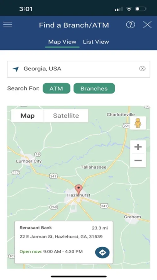 - Find nearby Branches and ATMs using the built-in GPS. Additionally, you can search by zip code or address.