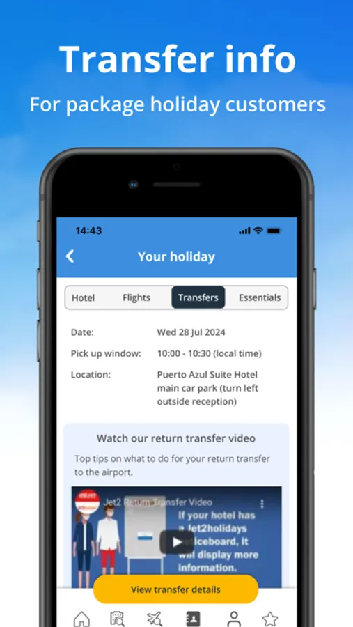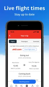 - While you're travelling: We've made your booking details more accessible, with all the important information you need to know in one place. For flight-only bookings, that includes your flight's status, and for package holiday bookings, you'll see your hotel details, travel vouchers, transfer information and exciting excursions available in your resort. To make your journey easier, you can upload and view all your travel documents in one handy area too. There's also easy access to our latest travel safety information.