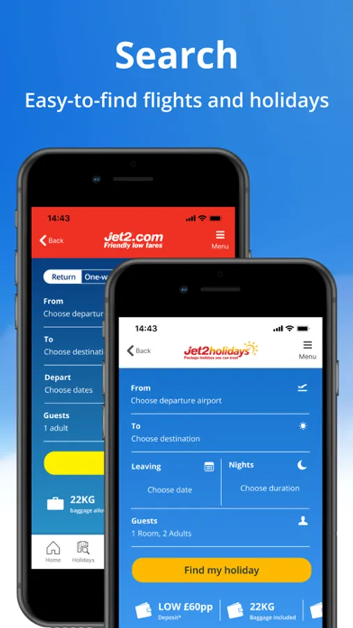 - For package holidays, book directly via the app for just a £60pp deposit*