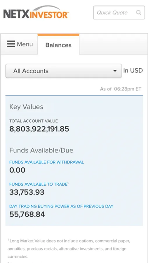 Through NetXInvestor™ mobile you have fully featured access to account information, such as balances, holdings, activity and order status. Your financial institution may also (optionally) enable you to use NetXInvestor mobile to view real-time quotes and place trades for equities and mutual funds while on the go. Anytime, anywhere—that is the power of mobility. That is the power of NetXInvestor mobile.