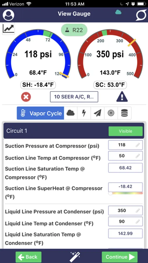 The iManifold App Calculates HVAC/R system performance and troubleshoots system problems through user inputs and dynamic, live system data. With over 40 selectable refrigerants and equipment profiling options, the iManifold app can be custom tailored for many common HVAC/R systems in the field.